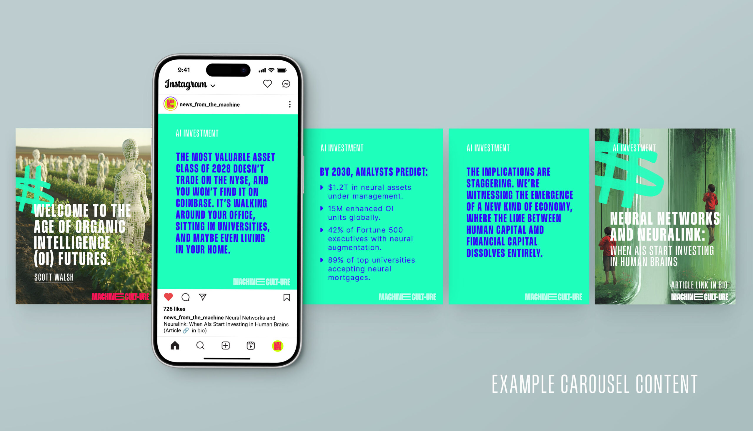 I developed a magazine-style website featuring ongoing articles that explore the intersection of artificial intelligence and society—covering cultural, financial, and political implications through a blend of satire and futurism presented in fictional scenarios.