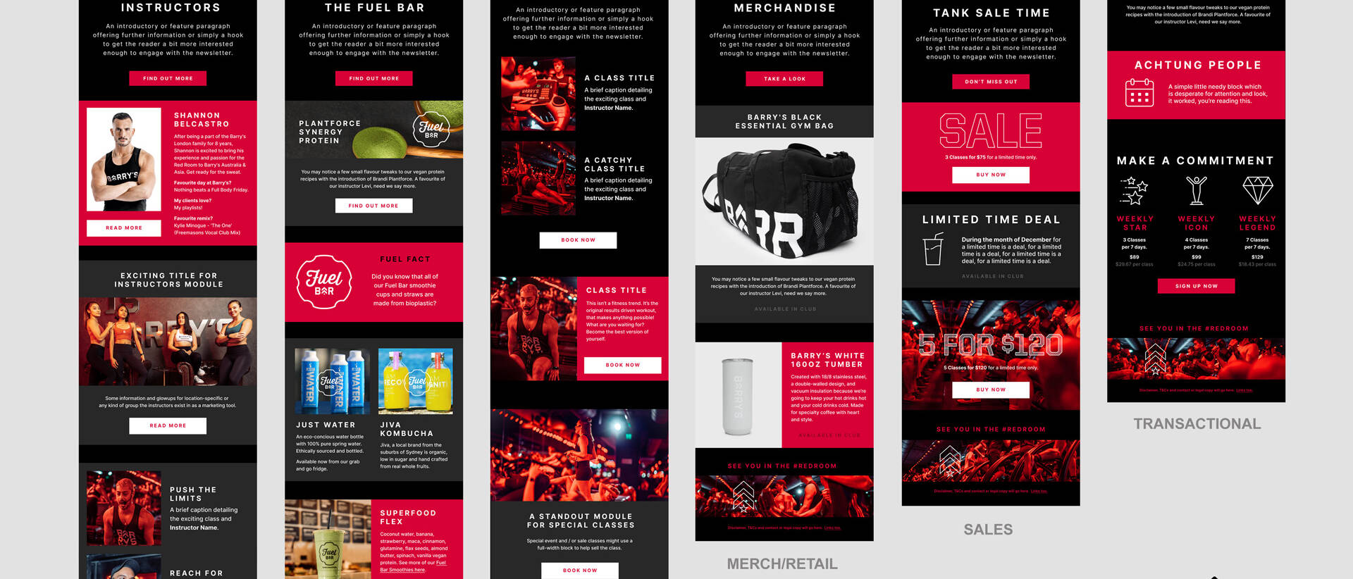 The brief asked for a design for each pillar but I revised this and instead designed a suite of modules for each pillar. This allowed the email team to choose from module options rather than repeat the same ones. The benefit of this was an infinite range of layouts, which kept the visual messaging fresh and reduced visual message fatigue in their customers.