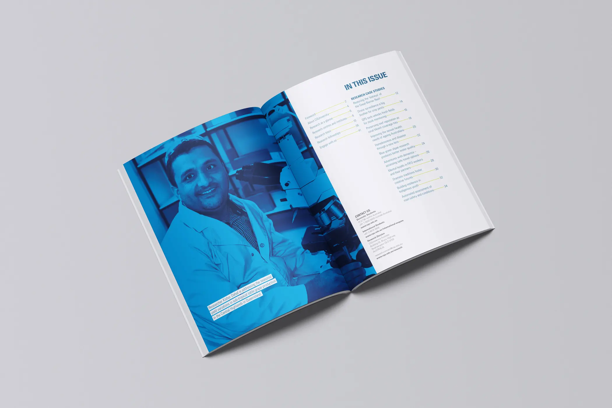 A 44-page research showcase publication highlighting CQUniversity’s applied research initiatives and their real-world impact across diverse fields from marine science to Indigenous health.
